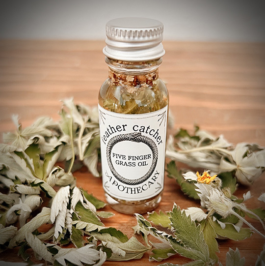 Five Finger Grass—also known as Cinquefoil—has long been used in folk magic for drawing success in anything the five fingers can do: love, money, protection, luck, and power. This oil, infused with wild harvested five finger grass, is crafted with that tradition in mind, offering support in achieving your goals, opening roads, and enhancing your ability to grasp what you seek. Use it in spellwork, anointing candles or charms, or carry a dab with you when facing challenges where influence and skill are needed. How to Use: Dress candles, anoint tools or talismans, or apply a small amount to the hands before work, prayer, or action.